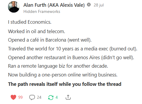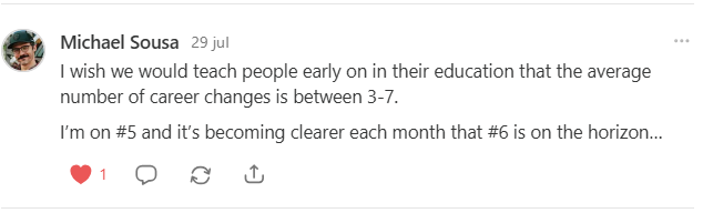 Michael Sousa left a comment on one of my notes: the average person will have 3–7 career changes in their lifetime.